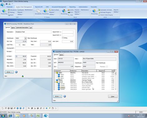 Provides fast and accurate manufacturing information including work in progress, assembly structure detail, where used or assembly cost reports and batch/serial item location from works orders. It features automatic work order generation from sales orders, batch works order progression and a comprehensive enquiry facility. Assembly structures can be simple or complex, including sub assemblies and components such as raw materials, labour or description only. The kitting function allows further flexibility by enabling works orders to be raised and receive the build quantity of the finished assembly into stock in a single process.